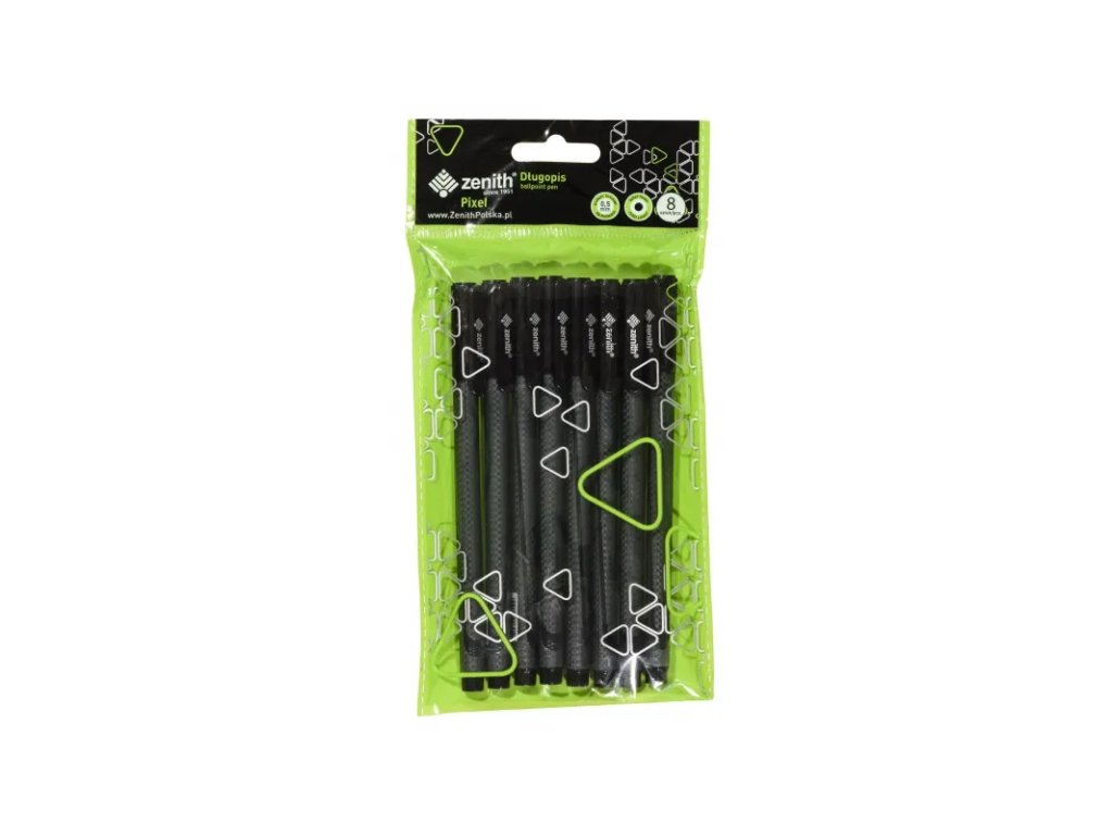 ZENITH Pixel, Kuličkové pero 0,5mm, černé s víkem, 8ks, 201318021
