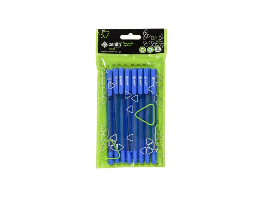 ZENITH Pixel, Kuličkové pero 0,5mm, modré s víkem, 8ks, 201318020