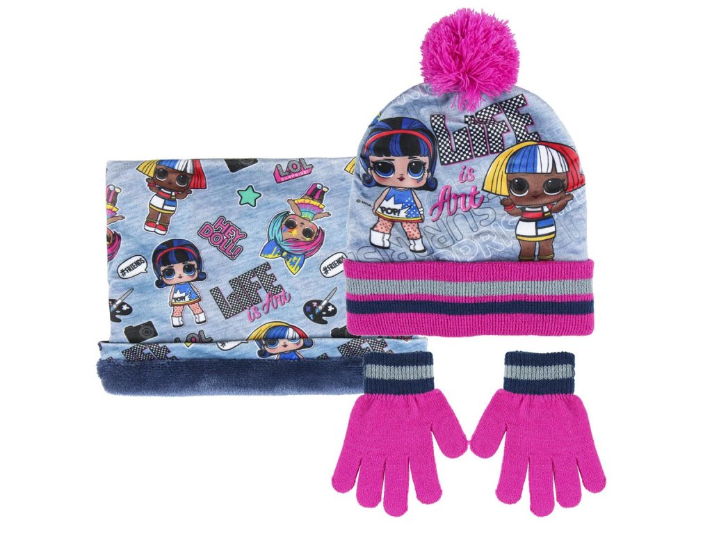 Zimní set v licenci L.O.L. Balení obsahuje čepici, nákrčník a rukavice. Univerzální velikost. Vhodné od 3 let.Doplňkové parametry