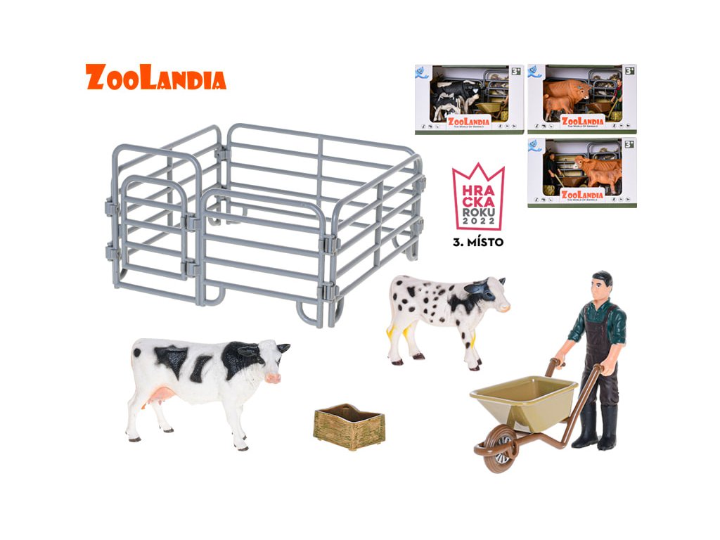Zoolandia kráva/býk s telátkem a doplňky, 4druhy, v krabičce