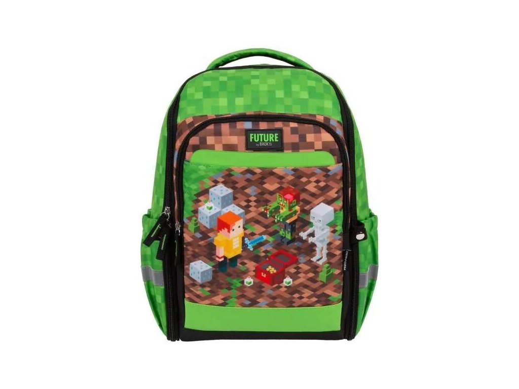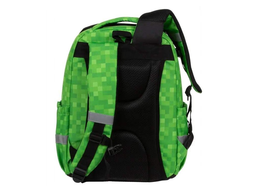 Lehký a moderní školní batoh pro nejmenší žáky základních škol. Tento prostorný a funkční školní batoh se bude líbit každému fanouškovi oblíbené hry. Batoh se vyznačuje pečlivým zpracováním a skvělým vzorem s herním motivem. Materiál, ze kterého je batoh vyroben, je pevný a voděodolný. Batoh má velkou a tuhou hlavní komoru s přepážkou, která pomůže dítěti udržet pořádek uvnitř batohu. Je prostorný, má jednu velkou komoru a dvě přední kapsy. Hlavní komora má další kapsu na notebook nebo tablet a místo pro podpis majitele. Tento model má také přední kapsu s organizérem a kroužkem na klíče a také malou kapsu, do které se snadno vejde krabička na oběd. Na bocích má batoh dvě otevřené kapsy na láhev s vodou. Všechny zipy jsou zakončeny velkými, šikovnými táhly. Záda batohu jsou dobře vyztužena a pokryta prodyšným materiálem. Batoh je navíc vybaven vysoce kvalitními polstrovanými ramenními popruhy, které jsou široké a na spodní straně pokryté prodyšným materiálem. Navíc má i nastavitelný hrudní popruh, který lze individuálně přizpůsobit potřebám dítěte a který pomáhá při přenášení těžších nákladů. Dno batohu je vyztuženo pěnou a má gumové nožky, které chrání batoh proti oděru a nečistotám. V horní části batohu je měkce polstrované ucho na přenášení a přídavné madlo na zavěšení. Ergonomicky tvarovaná tuhá záda znatelně odlehčují páteři malého majitele. Batoh má také reflexní prvky na ramenních popruzích a na každé ze 2 kapes na obou stranách batohu, které zajistí bezpečnost na silnici.