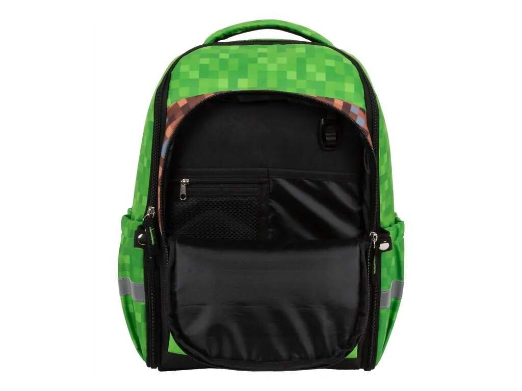 Lehký a moderní školní batoh pro nejmenší žáky základních škol. Tento prostorný a funkční školní batoh se bude líbit každému fanouškovi oblíbené hry. Batoh se vyznačuje pečlivým zpracováním a skvělým vzorem s herním motivem. Materiál, ze kterého je batoh vyroben, je pevný a voděodolný. Batoh má velkou a tuhou hlavní komoru s přepážkou, která pomůže dítěti udržet pořádek uvnitř batohu. Je prostorný, má jednu velkou komoru a dvě přední kapsy. Hlavní komora má další kapsu na notebook nebo tablet a místo pro podpis majitele. Tento model má také přední kapsu s organizérem a kroužkem na klíče a také malou kapsu, do které se snadno vejde krabička na oběd. Na bocích má batoh dvě otevřené kapsy na láhev s vodou. Všechny zipy jsou zakončeny velkými, šikovnými táhly. Záda batohu jsou dobře vyztužena a pokryta prodyšným materiálem. Batoh je navíc vybaven vysoce kvalitními polstrovanými ramenními popruhy, které jsou široké a na spodní straně pokryté prodyšným materiálem. Navíc má i nastavitelný hrudní popruh, který lze individuálně přizpůsobit potřebám dítěte a který pomáhá při přenášení těžších nákladů. Dno batohu je vyztuženo pěnou a má gumové nožky, které chrání batoh proti oděru a nečistotám. V horní části batohu je měkce polstrované ucho na přenášení a přídavné madlo na zavěšení. Ergonomicky tvarovaná tuhá záda znatelně odlehčují páteři malého majitele. Batoh má také reflexní prvky na ramenních popruzích a na každé ze 2 kapes na obou stranách batohu, které zajistí bezpečnost na silnici.