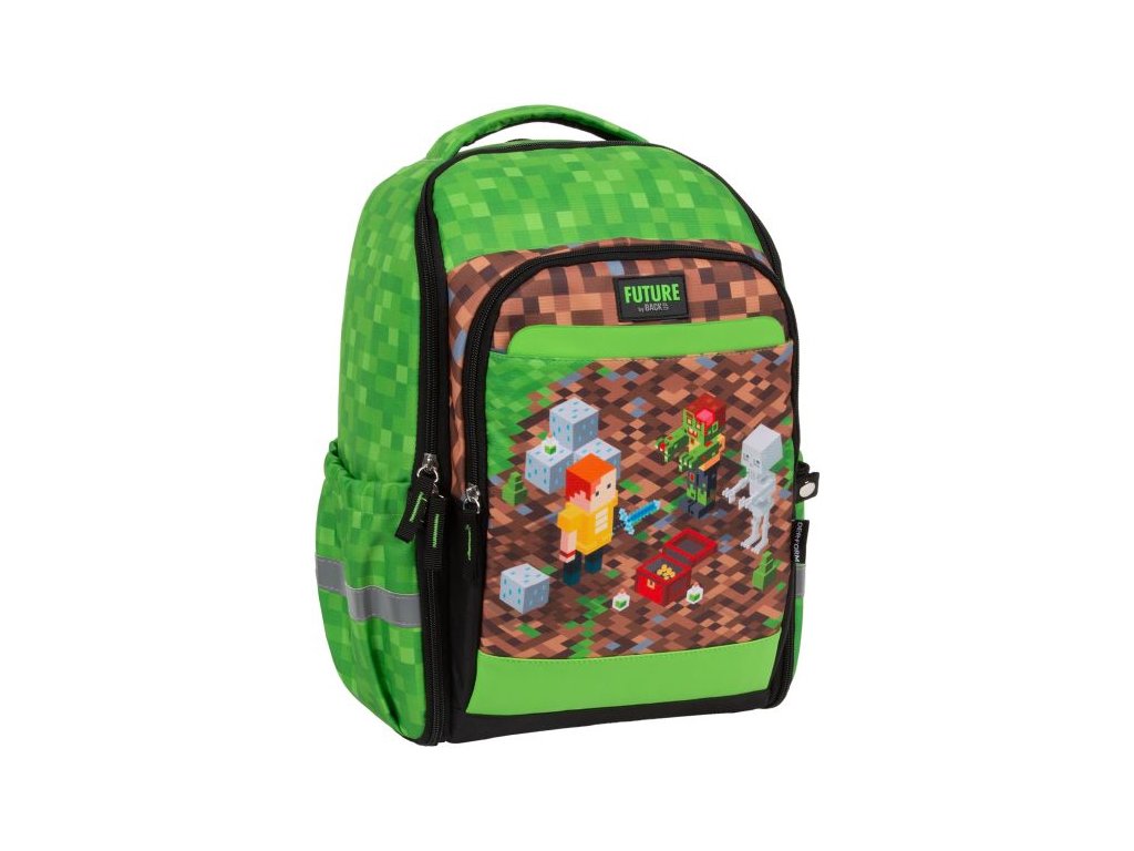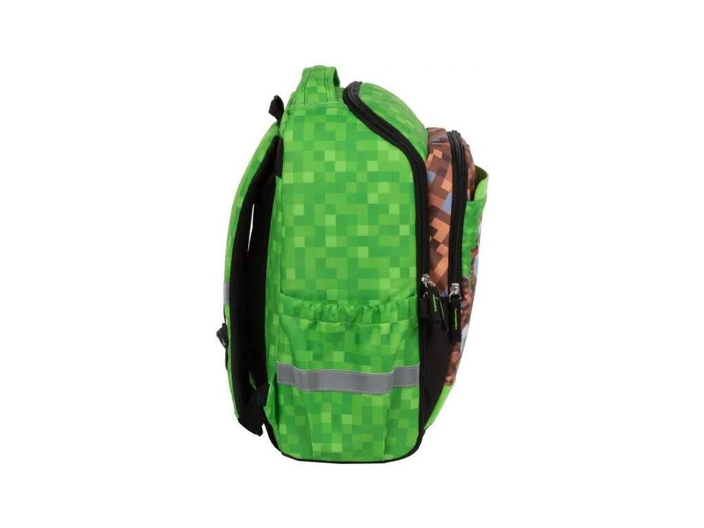 Lehký a moderní školní batoh pro nejmenší žáky základních škol. Tento prostorný a funkční školní batoh se bude líbit každému fanouškovi oblíbené hry. Batoh se vyznačuje pečlivým zpracováním a skvělým vzorem s herním motivem. Materiál, ze kterého je batoh vyroben, je pevný a voděodolný. Batoh má velkou a tuhou hlavní komoru s přepážkou, která pomůže dítěti udržet pořádek uvnitř batohu. Je prostorný, má jednu velkou komoru a dvě přední kapsy. Hlavní komora má další kapsu na notebook nebo tablet a místo pro podpis majitele. Tento model má také přední kapsu s organizérem a kroužkem na klíče a také malou kapsu, do které se snadno vejde krabička na oběd. Na bocích má batoh dvě otevřené kapsy na láhev s vodou. Všechny zipy jsou zakončeny velkými, šikovnými táhly. Záda batohu jsou dobře vyztužena a pokryta prodyšným materiálem. Batoh je navíc vybaven vysoce kvalitními polstrovanými ramenními popruhy, které jsou široké a na spodní straně pokryté prodyšným materiálem. Navíc má i nastavitelný hrudní popruh, který lze individuálně přizpůsobit potřebám dítěte a který pomáhá při přenášení těžších nákladů. Dno batohu je vyztuženo pěnou a má gumové nožky, které chrání batoh proti oděru a nečistotám. V horní části batohu je měkce polstrované ucho na přenášení a přídavné madlo na zavěšení. Ergonomicky tvarovaná tuhá záda znatelně odlehčují páteři malého majitele. Batoh má také reflexní prvky na ramenních popruzích a na každé ze 2 kapes na obou stranách batohu, které zajistí bezpečnost na silnici.