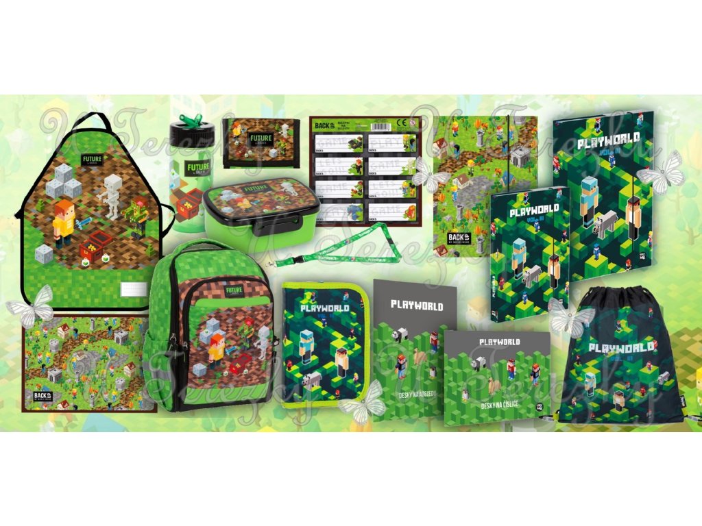 Zvýhodněná školní sada 15ks set batoh BACKUP GAME LEVEL MInecraft PLSZDF35/015/02- obsahuje školní ergononický batoh, penál, sáček, zástěrka, desky na sešity, desky na čísla a písmena, láhev na pití, box na svačinu, jmenovky, klíčenka, peněženka, pracovní podložka, boxy na sešity