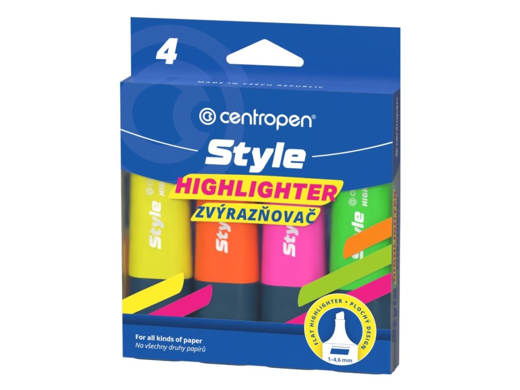 Zvýrazňovač CENTROPEN 6252 Style Soft (klínový hrot 1-4,6 mm) 4 fluo barvy