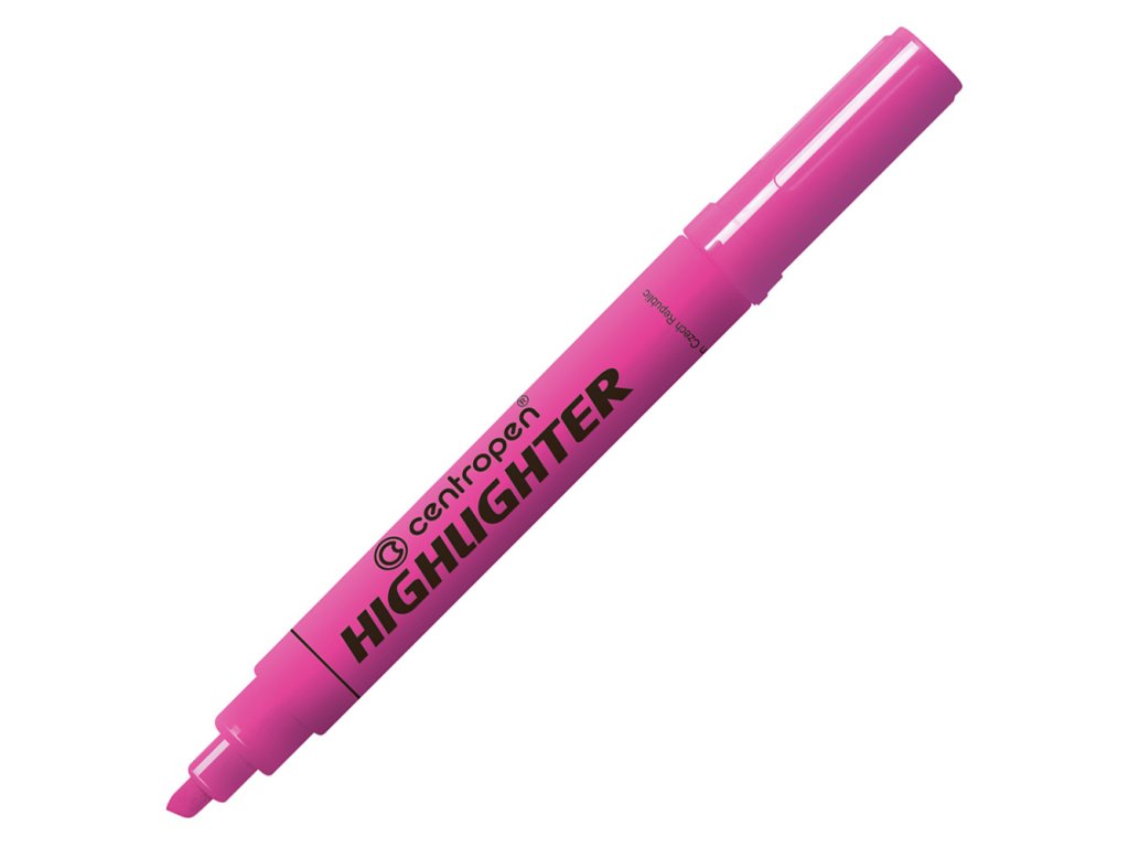 Silný celofluorescenční zvýrazňovač s reflexním inkoustem vhodným na zvýraznění textu na všech druzích papíru, včetně faxového a samokopírovacího. Klínový hrot, šírka stopy 1 - 4,6 mm, Barva růžová.Doplňkové parametry