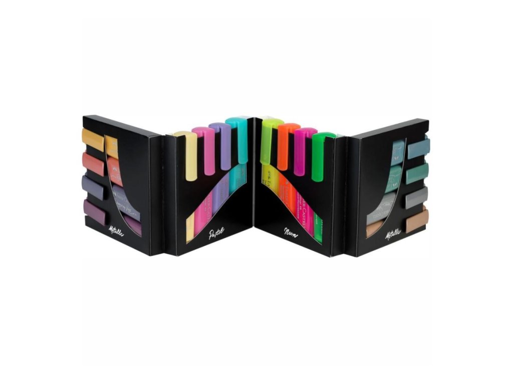 - sada obsahuje 8x matalické barvy, 4x neonové barvy, 4x pastelové barvy