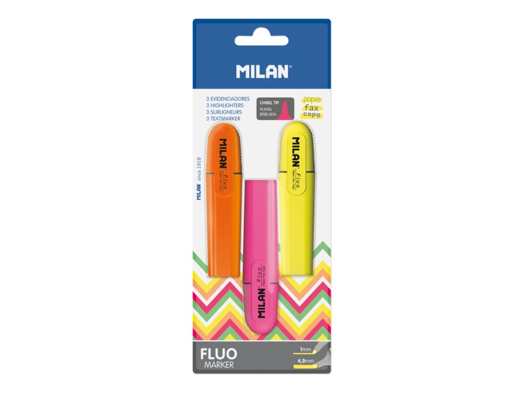 Zvýrazňovač MILAN Fluo Marker - sada 3 ks