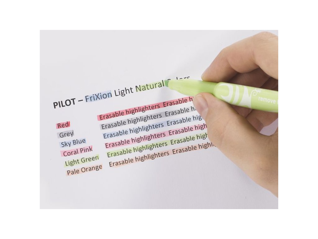 Zvýrazňování, náčrtky, kresby, vybarvování, psaní. S těmito jedinečnými gumovacími zvýrazňovači s klínovým hrotem, které vám umožní ozvláštnit a zdůraznit vaši práci na denících, plánovačích, poznámkách nebo i dopisech, je možné vše. Nebojte se použít Pilot's FriXion Light na jakýkoli projekt, aniž byste se báli udělat chybu. Díky neuvěřitelnému výkonu tepelně citlivého inkoustu Pilot chyby jednoduše vygumujete, kdykoli budete chtít. K tomu slouží opačný konec zvýrazňovače s integrovanou „gumou“Doplňkové parametry