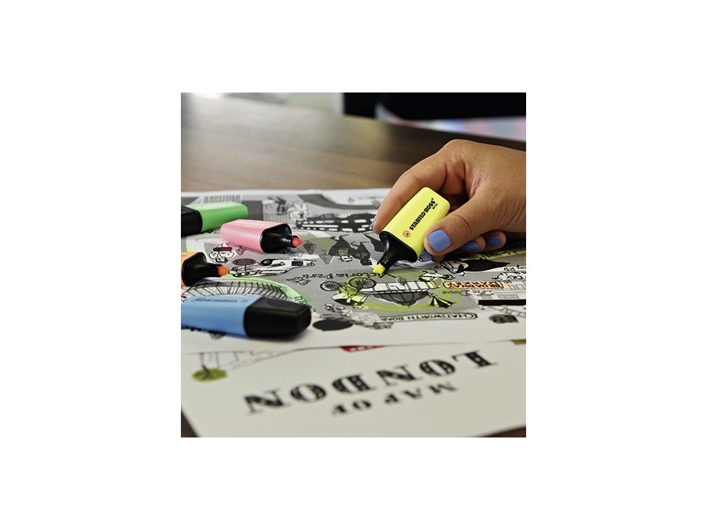 STABILO BOSS MINI. Zvýrazňovače pre všetkých, ktorí si myslia, že mini je roztomilý, zábavný alebo praktický. Klasický STABILO BOSS ORIGINAL v mini formáte: môžete sa spoľahnúť na plný výkon. Zmestí sa do najmenšieho vrecka. Technológia STABILO Anti-Dry-Out: 4 hodiny ochrany proti vysychaniu pri sústredenej práci. Kvalita STABILO v prevedení, pohodlný pri nosení a písaní. Atrament na vodnej báze. 2 šírky čiar 2 + 5 mm.Doplňkové parametry