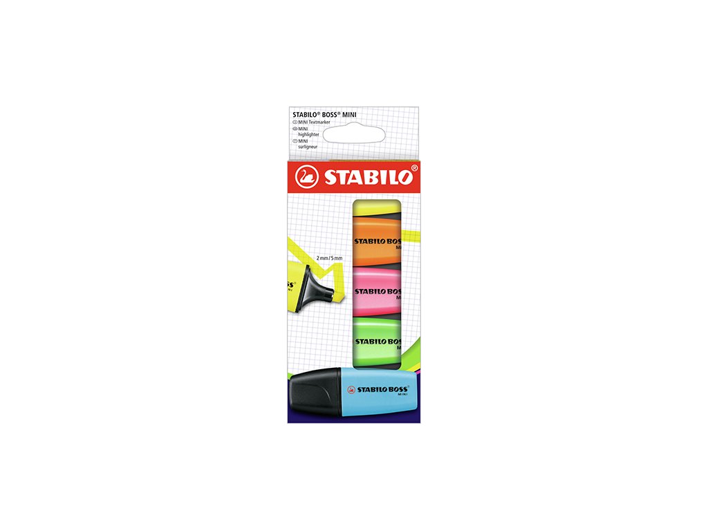 Zvýrazňovač - STABILO BOSS MINI - 5 ks balení - s 5 různými barvami