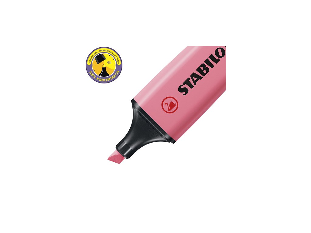 Vysoký výkon psaní a dlouhou životností. Univerzální inkoust na vodní bázi, měkký hrot. Signální barvy, které ani po čase neztrácejí sílu. Zvýrazňovač vydrží dlouho bez víčka - až 4 hodiny! Barva: pastelově třešňově růžová.Doplňkové parametry